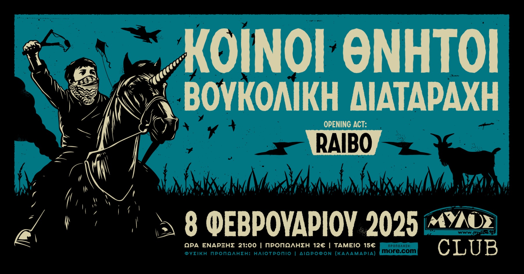 Κοινοί Θνητοί – Βουκολική Διαταραχή – Raibo Live στη Θεσσαλονίκη – Μύλος Club