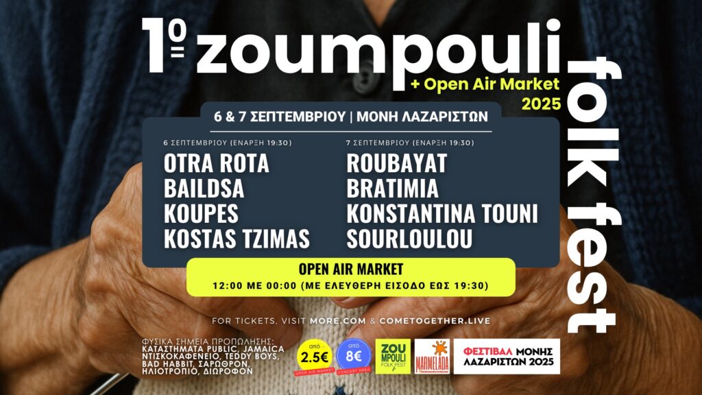 Σάββατο 6 και Κυριακή 7 Σεπτεμβρίου | Μονή Λαζαριστών (Κολοκοτρώνη 21, Σταυρούπολη) | Προσέλευση: από τις 12:00 | Έναρξη συναυλιών: 19:30 | Εισιτήρια: EARLY BIRD (μόνο ηλεκτρονικά – περιορισμένα εισιτήρια): Διήμερο (6 & 7 Σεπτεμβρίου): 14,00 € – Μονοήμερο (6 ή 7 Σεπτεμβρίου): 8,00 € // ΠΡΟΠΩΛΗΣΗ: Διήμερο: 24,00 € – Μονοήμερο: 13,00 € // ΤΑΜΕΙΟ/ΠΟΡΤΑ: Διήμερο: 28,00 € – Μονοήμερο: 15,00 € // Εισιτήρια Zoumpouli Open Air Market Area: EARLY BIRD (μόνο ηλεκτρονικά – περιορισμένα εισιτήρια): Διήμερο: 4.50 € – Μονοήμερο: 2.50 € // ΠΡΟΠΩΛΗΣΗ: Διήμερο: 6.00 € – Μονοήμερο: 4.00 € // ΤΑΜΕΙΟ/ΠΟΡΤΑ: Διήμερο: 7.00 € – Μονοήμερο: 5.00 € | Προπώληση: cometogether.live, more.com