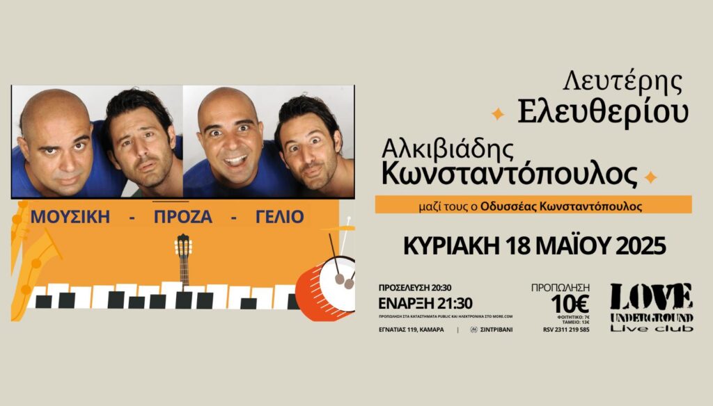 Το εκρηκτικό δίδυμο Λευτέρης Ελευθερίου και Αλκιβιάδης Κωνσταντόπουλος επιστρέφει δυναμικά για ένα αξέχαστο live στο LOVE Underground, στην καρδιά της Θεσσαλονίκης!