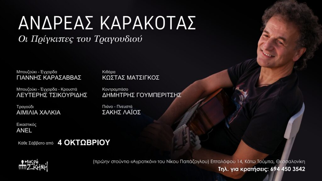 Πέρυσι, τα Σάββατα στη Μικρή Σκηνή με τον Ανδρέα Καρακότα έγιναν κάτι περισσότερο από βραδιές τραγουδιού∙ έγιναν συναντήσεις. Μια ατμόσφαιρα γεμάτη τραγούδι, ιστορίες και συγκίνηση, που έφερε το κοινό πιο κοντά στον ερμηνευτή και στη μουσική του.