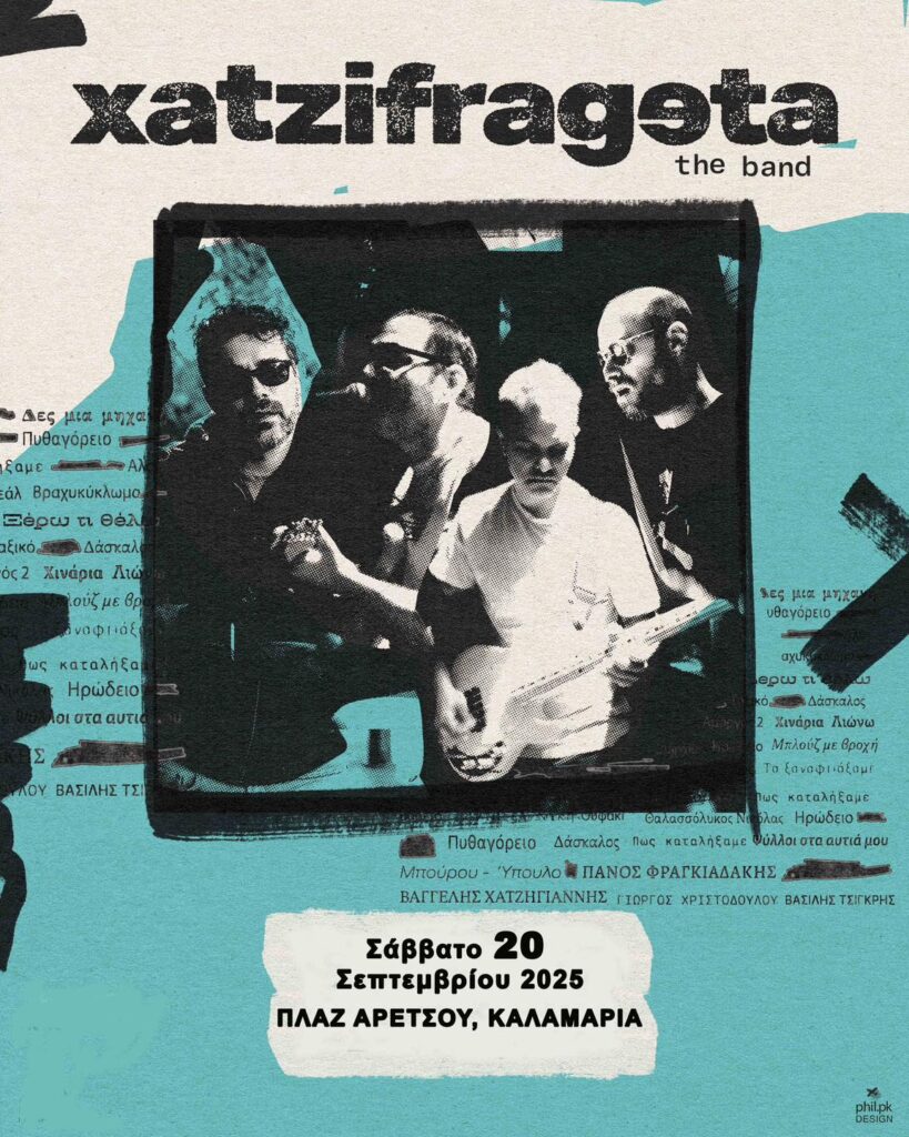 Οι Χατζηγφραγκέτα σε full band σύνθεση, το Σάββατο 20 Σεπτεμβρίου 2025 στη Καλαμαριά, στη πλαζ Αρετσούς.