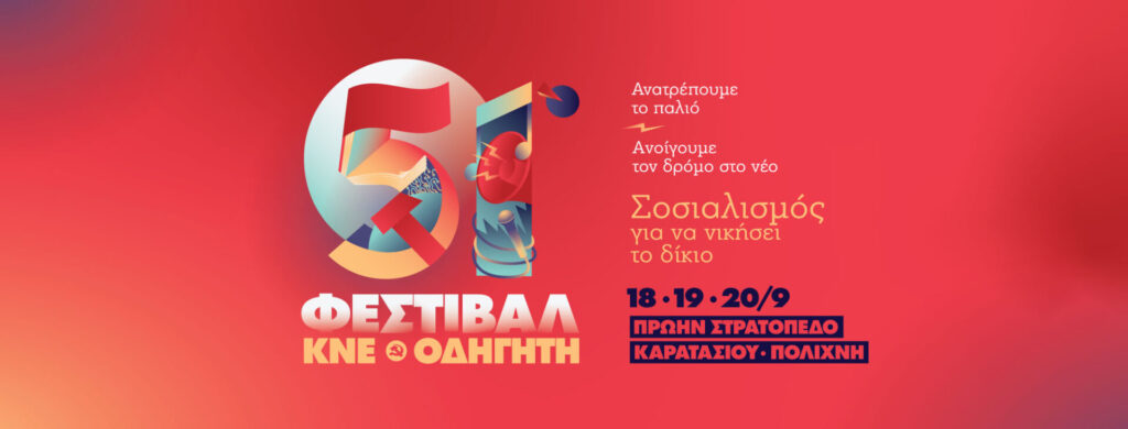 Στις 18 – 19 και 20 Σεπτέμβρη στο πρώην στρατόπεδο Καρατάσιου στην Πολίχνη θα πραγματοποιηθούν οι εκδηλώσεις του 51ου Φεστιβάλ ΚΝΕ – «Οδηγητή» με σύνθημα «Ανατρέπουμε το παλιό, ανοίγουμε το δρόμο στο νέο. Σοσιαλισμός για να νικήσει το δίκιο!» στη Θεσσαλονίκη.