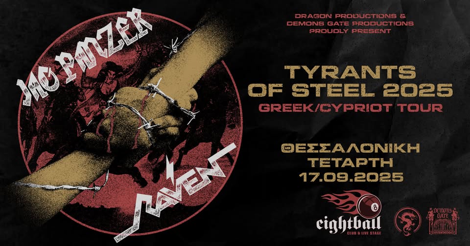 Το tour ξεκινάει από την Λευκωσία στις 16 Σεπτεμβρίου, θα επισκεφτεί μετά τη Θεσσαλονίκη (17/9 Eightball) , τα Τρίκαλα (18/9 Ανδρομέδα) και την Αθήνα (19/9 Κύτταρο) ενώ στο Αγρίνιο θα εμφανιστούν μόνο οι Jag Panzer χωρίς τους Raven, το Σάββατο 20 Σεπτεμβρίου. To πακέτο αυτό αναμένεται να τέρψει την πάντα τεράστια όρεξη του Ελληνικού κοινού, ενώ το γεγονός ότι ξεκινάει από την πρωτεύουσα της Κύπρου μόνο ως αμελητέο δε μπορεί να περάσει. Η σεζόν ξεκινάει πανέμορφα και πολλά υποσχόμενα και σας επιφυλάσσουμε πολλές ακόμα εκπλήξεις για το υπόλοιπο του 2025 αλλά και τις αρχές του 2026.