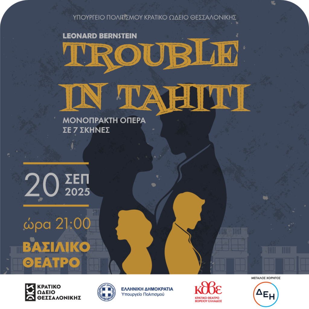 Το Κρατικό Ωδείο Θεσσαλονίκης παρουσιάζει τη μονόπρακτη όπερα Trouble in Tahiti του Leonard Bernstein.