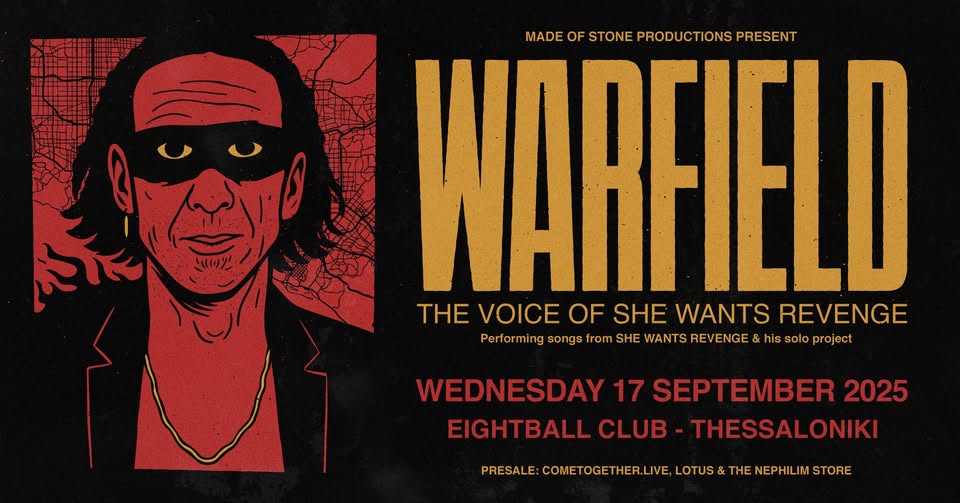 Ο Justin Warfield των She Wants Revenge, φέρνει το solo project του για πρώτη φορά στην Ελλάδα, για δύο συναυλίες, στις οποίες θα ακουστούν τραγούδια των She Wants Revenge και από την solo πορεία του.