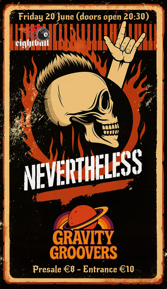 Οι Nevertheless ενώνουν τις δυνάμεις τους με τους Gravity groovers στη πρώτη τους εμφάνιση μαζί. Ετοιμαστείτε για μια βραδιά rock , με πασπαλίσματα hard rock pop και heavy metal.