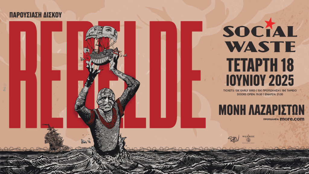 Οι Social Waste επιστρέφουν στην Θεσσαλονίκη με τον πολυαναμενόμενο καινούριο τους δίσκο Rebelde! Πέντε χρόνια μετά την τελευταία τους δισκογραφική δουλειά θα μας παρουσιάσουν τα νέα τους τραγούδια στη σκηνή του Φεστιβάλ Μονής Λαζαριστών την Τετάρτη 18 Ιουνίου, στις 21:30.