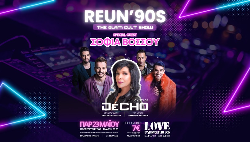 Reun’90s: Decho – Αντώνης Παπαηλίας Live – DJ Vakaros – Special Guest: Σοφία Βόσσου| Love Underground