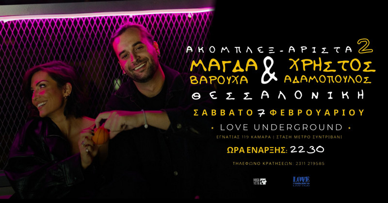 Μετά την επιτυχημένη περσινή τους πορεία, οι Μάγδα Βαρούχα και Χρήστος Αδαμόπουλος επιστρέφουν για δεύτερη σεζόν με το ανανεωμένο project «Ακομπλεξ-Άριστα 2» στην Θεσσαλονίκη!