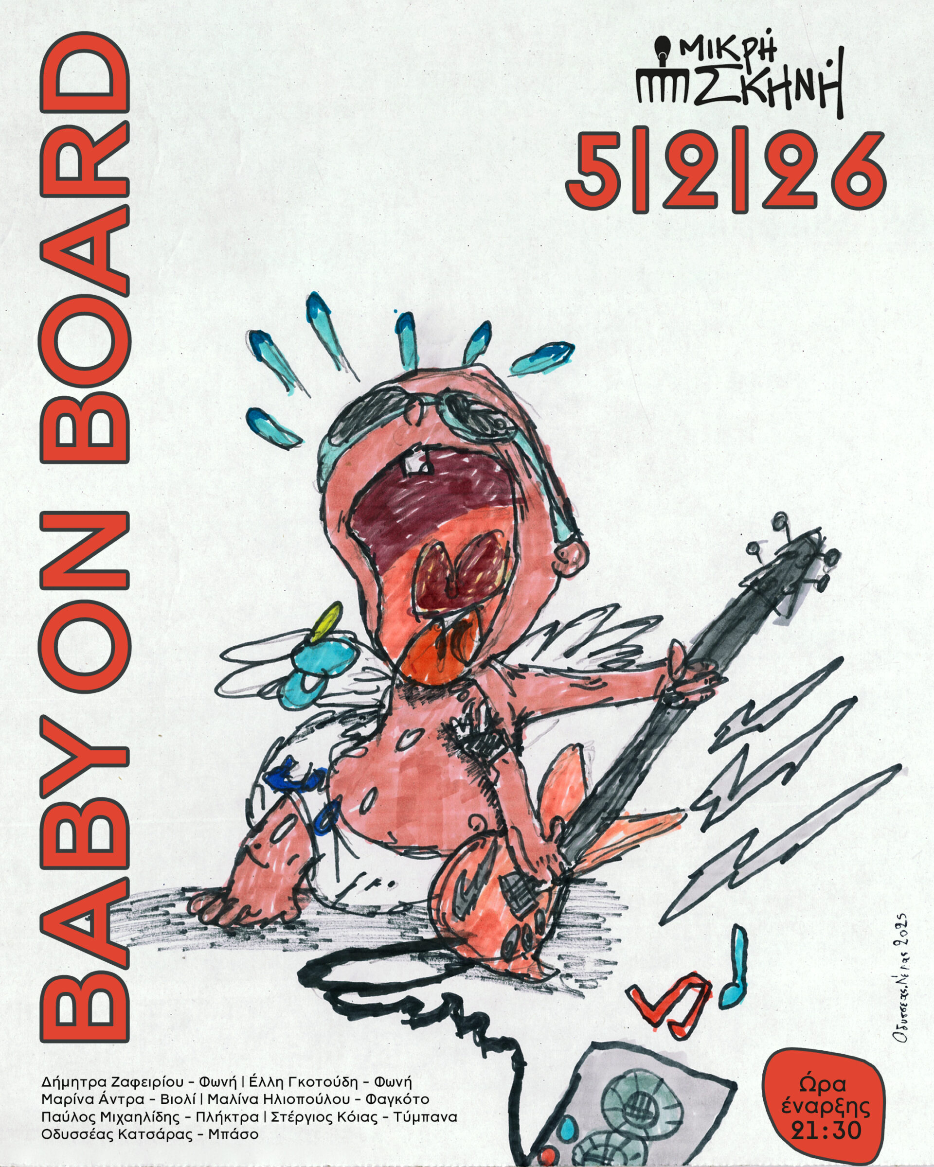 Με πυρήνα τον ήχο και επιρροές που κινούνται ανάµεσα στην indie pop, το alternative και τη σύγχρονη τραγουδοποιία, ο Baby on Board χτίζει έναν κόσµο προσωπικό και συναισθηµατικό, όπου οι µελωδίες συναντούν τον άµεσο στίχο και την ένταση της ζωντανής µπάντας.
