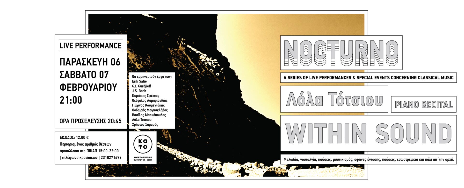Ένα παιχνίδι παζλ μέσα στο χρόνο είναι αυτό το ρεσιτάλ. Μελωδία, νοσταλγία, παύσεις, μυστικισμός, σφήνες έντασης, παύσεις, εσωστρέφεια και πάλι απ΄την αρχή. Το πρώτο μέρος ανοίγει με αγαπημένα έργα του ιδιόρυθμου Γάλλου συνθέτη Erik Satie, για να προχωρήσει με τον ελληνικής καταγωγής φιλόσοφο G. I. Gurdjieff και να κλείσει με J.S. Bach. Το δεύτερο μέρος είναι αφιερωμένο σε μια πιο σύγχρονη ατμοσφαιρική γραφή, που σχεδόν πάντα όμως διατηρεί τη σύνδεση με τη μελωδική γραμμή.