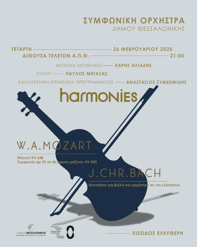 Μουσική Διεύθυνση: Χάρης Ηλιάδης | Σολίστ (Βιόλα): Παύλος Μεταξάς | Καλλιτεχνική επιμέλεια προγράμματος: Αναστάσιος Συμεωνίδης