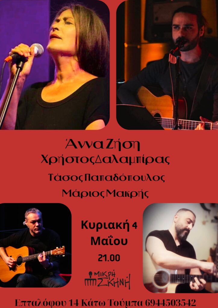 Κυριακή 4 Μαΐου | Μικρή Σκηνή (Επταλόφου 14, Κάτω Τούμπα) | Έναρξη: 21:00 | Είσοδος: 8€ | Κρατήσεις: 6944 503542