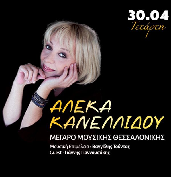 Η μεγάλη κυρία του ελληνικού τραγουδιού, η μοναδική Αλέκα Κανελλίδου, έρχεται την Τετάρτη 30 Απριλίου για μια ξεχωριστή συναυλία στο Μέγαρο Μουσικής Θεσσαλονίκης. Με τη χαρακτηριστική αισθαντική φωνή της, που έχει σημαδέψει τη δεκαετία του ’70 και παραμένει αναλλοίωτη στο χρόνο, και την διακριτική σκηνική της παρουσία, η Αλέκα Κανελλίδου υπόσχεται ένα λαμπερό βράδυ γεμάτο συγκίνηση, αναμνήσεις και διαχρονικές μελωδίες.
