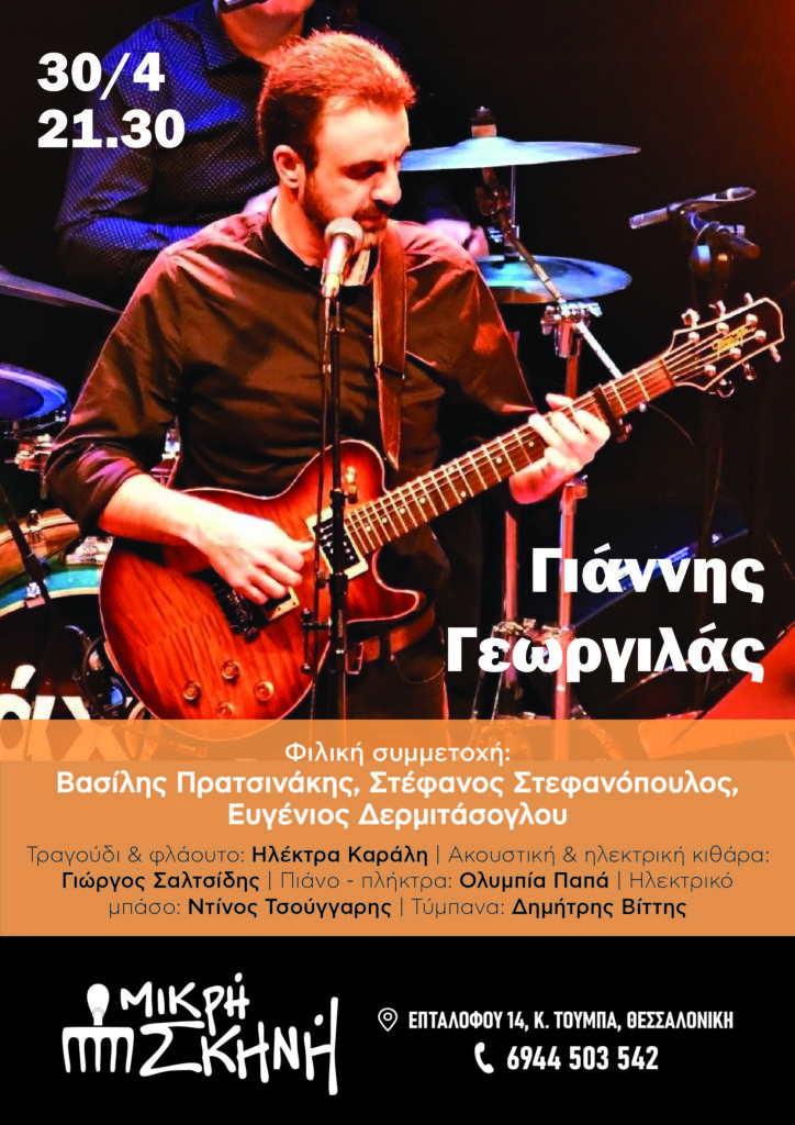 Η “Μικρή Σκηνή” ετοιμάζεται να υποδεχτεί ξανά τον Γιάννη Γεωργιλά την Τετάρτη 30 Απριλίου 2025. Ο ξεχωριστός συνθέτης και ερμηνευτής επιστρέφει για μια μοναδική εμφάνιση, με στόχο να δημιουργήσει ξανά μια βραδιά γεμάτη συναίσθημα και συνομιλία με το κοινό, τη φορά αυτή υποδεχόμενος τους αγαπημένους φίλους και συνοδοιπόρους στη δισκογραφία Βασίλη Πρατσινάκη, Στέφανο Στεφανόπουλο και Ευγένιο Δερμιτάσογλου να συμπράξουν μαζί του σε μεγάλο μέρος της εκδήλωσης.
