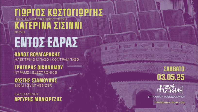 Σάββατο 3 Μαΐου | Μικρή Σκηνή (Επταλόφου 14, Κάτω Τούμπα) | Έναρξη: 22:00 | Εισιτήρια: 13€ | Προπώληση: more.com | Κρατήσεις: 6944 503542