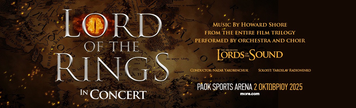Η Συμφωνική Ορχήστρα «Lords of the Sound» η οποία πραγματοποίησε 5 sold out συναυλίες στο Christmas Theater, έρχεται στον PAOK Sports Arena και παρουσιάζει τη θρυλική μουσική παράσταση «Lord of the Rings in Concert»!