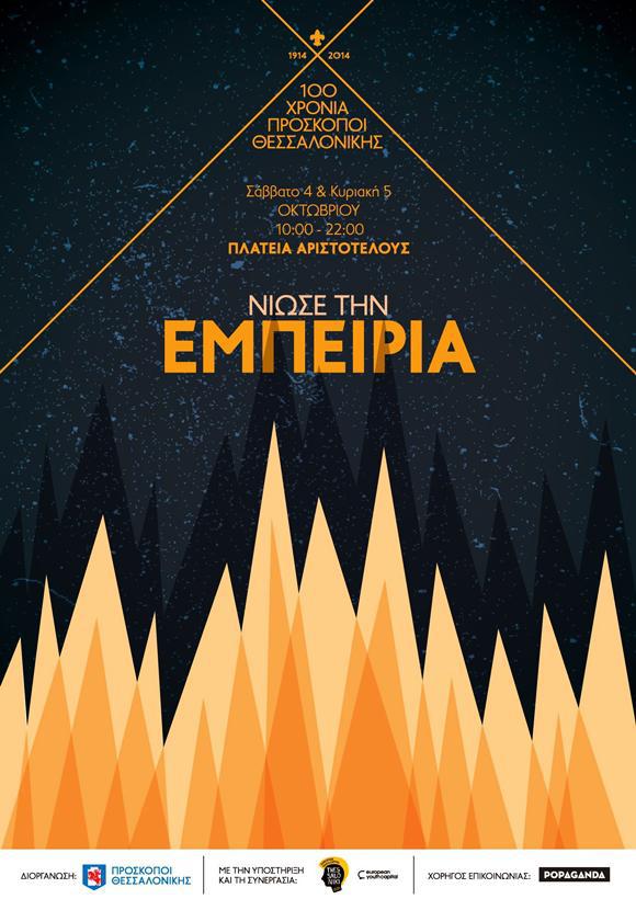 Η Θεσσαλονίκη-Ευρωπαϊκή Πρωτεύουσα Νεολαίας 2014 και οι Πρόσκοποι Θεσσαλονίκης μετατρέπουν την πλατεία Αριστοτέλους σε «Προσκοπική Πολιτεία» το Σαββατοκύριακο 4 και 5 Οκτωβρίου.