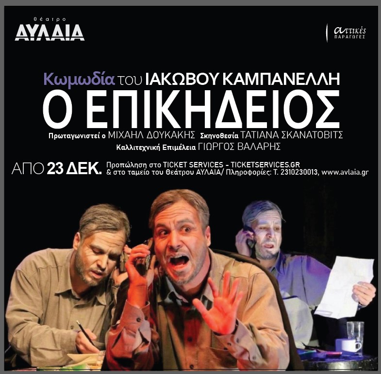 Μετά την επιτυχημένη πορεία σε Ελλάδα, Ευρώπη και Αμερική, η κωμωδία του Ιάκωβου Καμπανέλλη «Ο Επικήδειος», έρχεται στην Θεσσαλονίκη τον Δεκέμβριο στο Θέατρο Αυλαία. Στα πλαίσια της παγκόσμιας περιοδείας αυτού του αριστουργήματος του Ιάκωβου Καμπανέλλη, που παρουσιάζεται για πρώτη φορά με αυτόν τον μοναδικό τρόπο, θα δοθούν 12 μόνο παραστάσεις, καθώς αμέσως μετά η παράσταση συνεχίζει το ταξίδι της ανά την Ελλάδα.