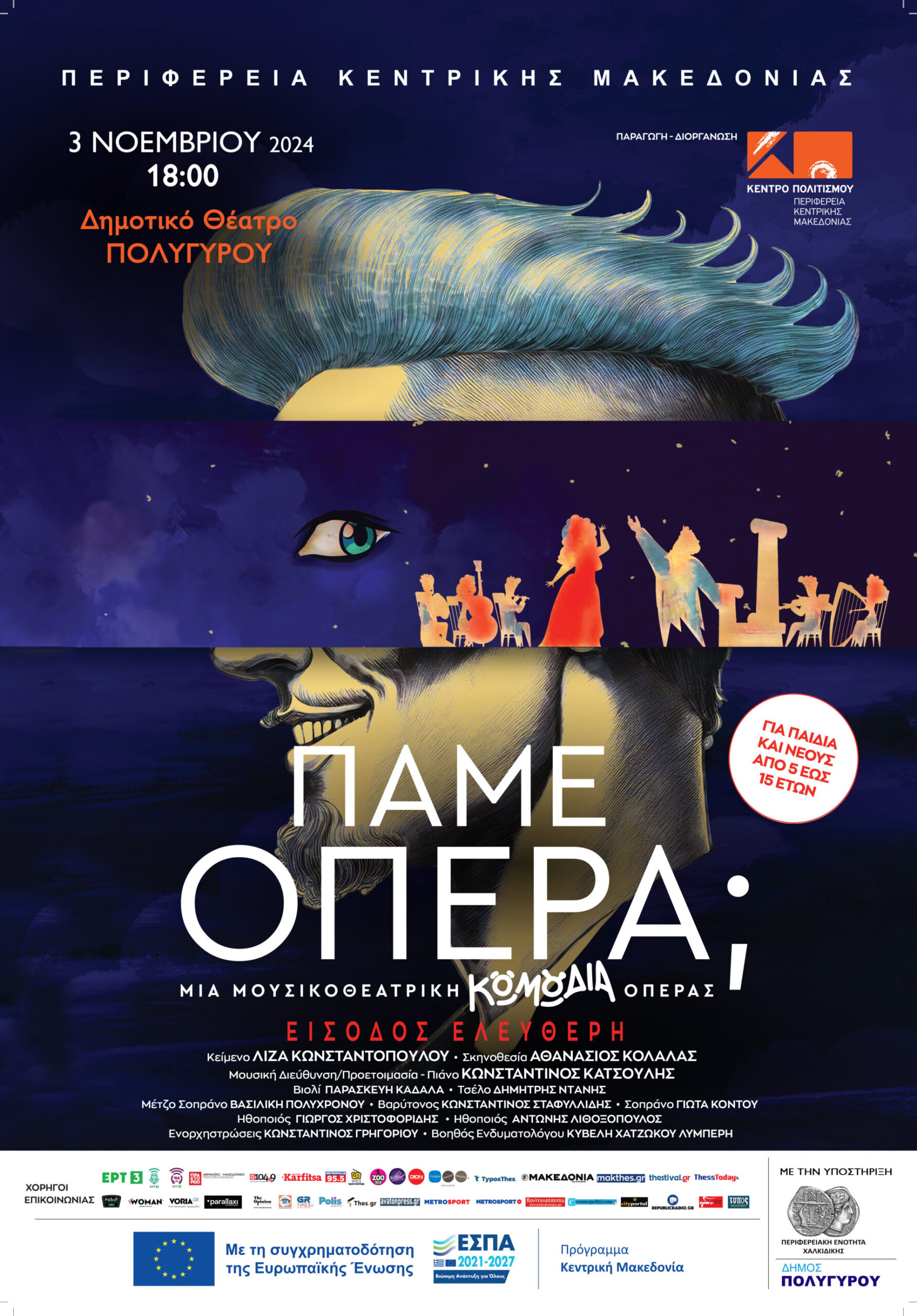 «ΠΑΜΕ ΟΠΕΡΑ;» είναι μια θεατρική παράσταση αλλά και ένα Gala Όπερας ταυτόχρονα, με έντονο το κωμικό στοιχείο, που θα παρουσιαστεί την Κυριακή 3 Νοεμβρίου και ώρα 18:00, στο Δημοτικό Θέατρο Πολυγύρου, με ελεύθερη είσοδο..