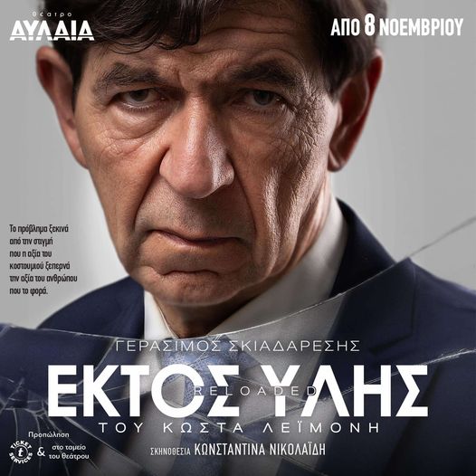 Το βραβευμένο έργο «Εκτός Ύλης reloaded» του Κώστα Λεϊμονή, επανέρχεται ανανεωμένο και δυναμικότερο, σε σκηνοθεσία της Κωνσταντίνας Νικολαΐδη και με τον Γεράσιμο Σκιαδαρέση στον ρόλο του υπουργού.