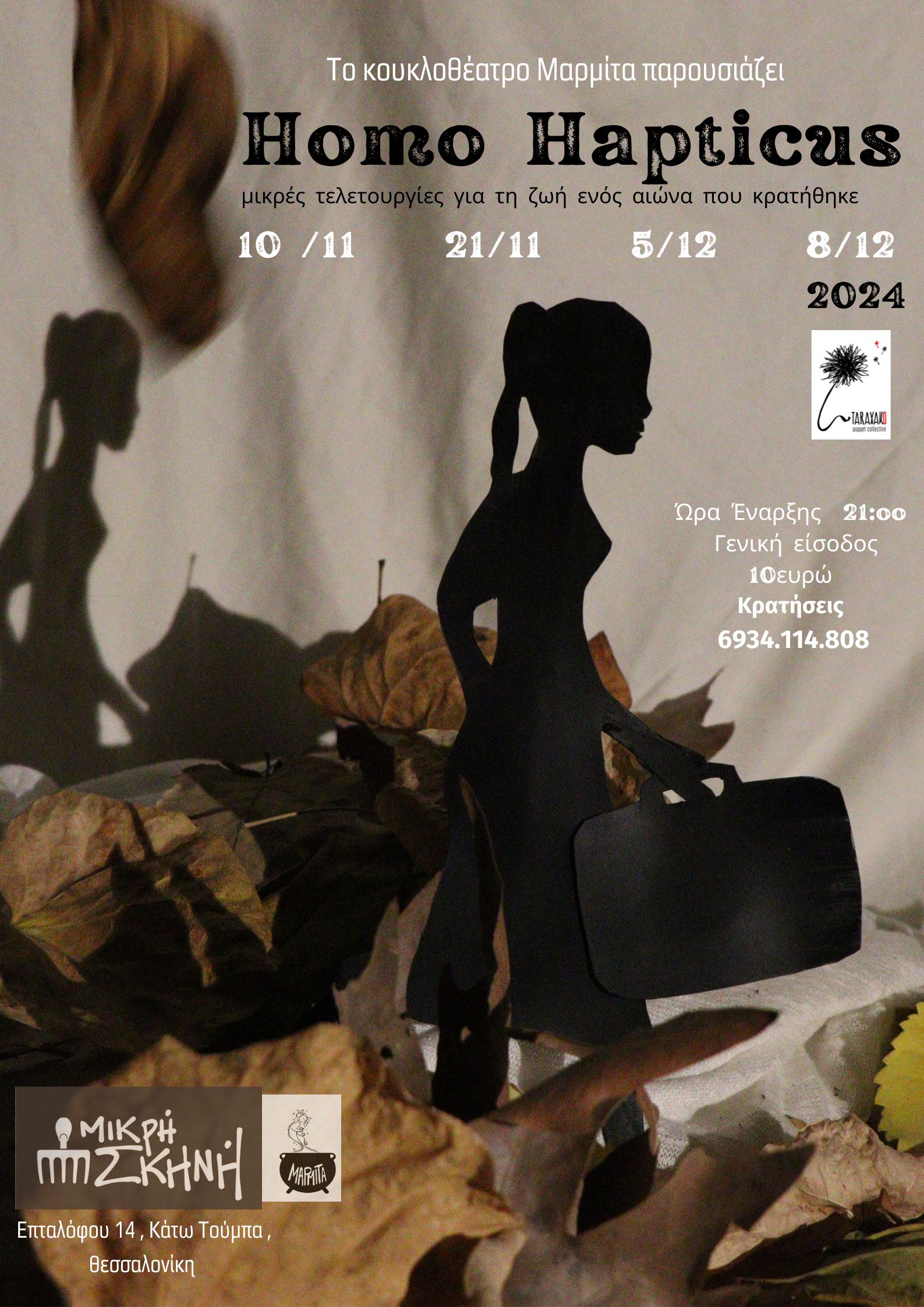 Το κουκλοθέατρο Μαρμίτα παρουσιάζει την παράσταση για ενήλικο και εφηβικό κοινό , Homo Hapticus , στον φιλόξενο χώρο της Μικρής Σκηνής .