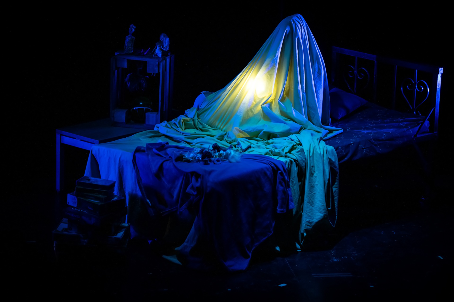 Η σκηνή μεταμορφώνεται σε έναν ιδιόμορφο, σαγηνευτικό χώρο με αύρα καμπαρέ, έναν τόπο όπου το κοινό γίνεται μάρτυρας ενός σκοτεινού σόου που ακροβατεί ανάμεσα στη φαντασία και την πραγματικότητα, τον ρεαλισμό και το μεταφυσικό, τη βία και την τρυφερότητα.