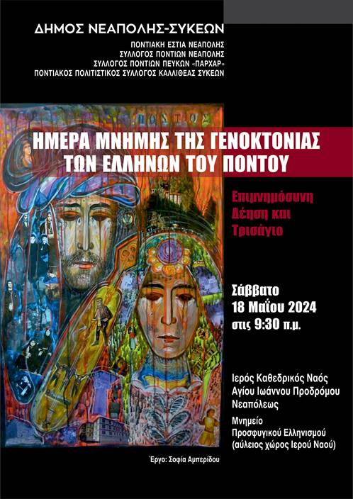 Την μνήμη των θυμάτων της Γενοκτονίας των Ελλήνων του Πόντου τιμά το Σάββατο 18 Μαϊου ο δήμος Νεάπολης-Συκεών με επιμνημόσυνη δέηση και Τρισάγιο που θα τελεστεί με αφορμή τη συμπλήρωση 105 χρόνων από τη θηριωδία των νεότουρκων.