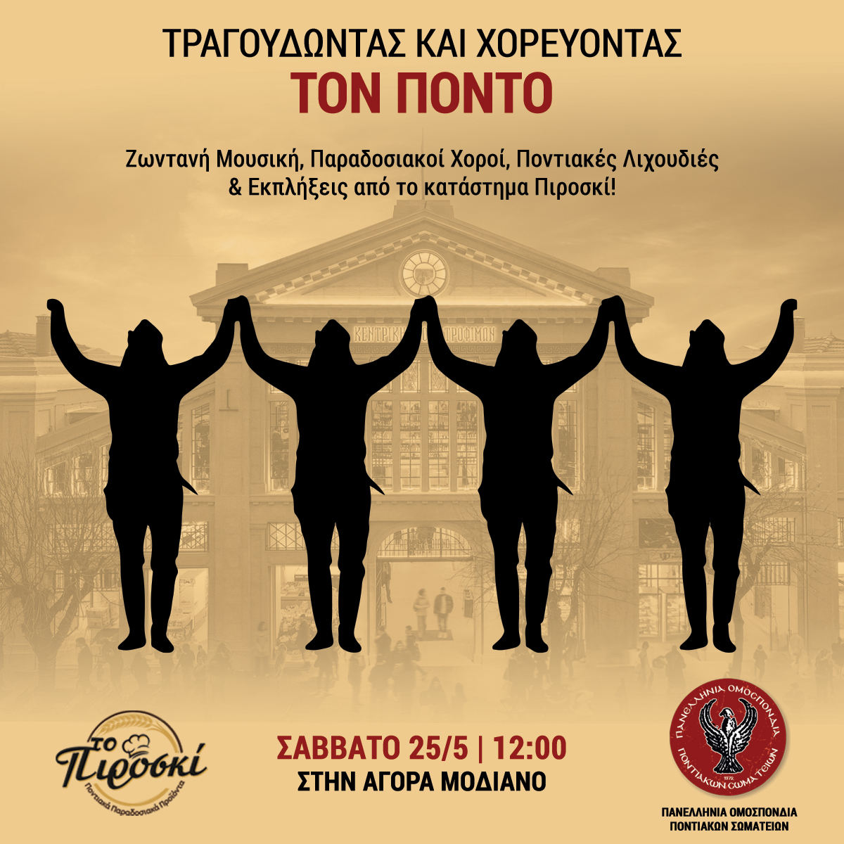 Το Σάββατο 25 Μαΐου και ώρα 12:00π.μ. θα διοργανωθεί μουσική εκδήλωση “Τραγουδώντας και χορεύοντας τον Πόντο“ στην Αγορά Μοδιάνο.