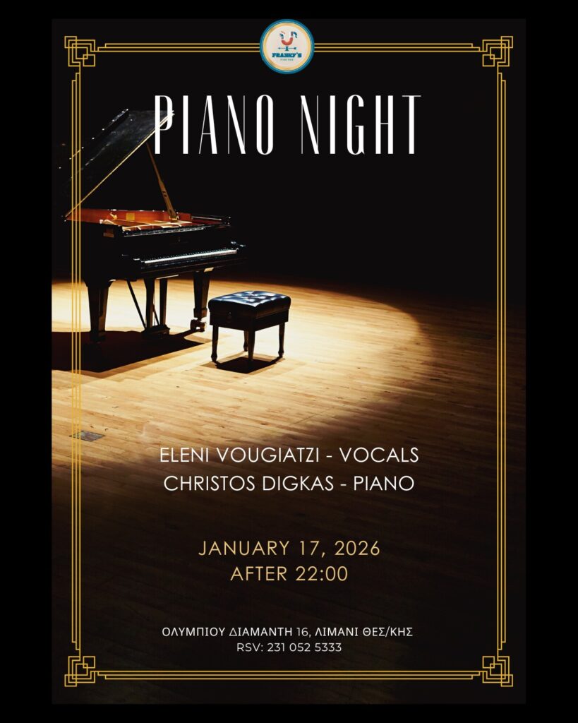 Piano night με την Ελένη Βουγιατζή στη φωνή και τον Χρήστο Δίγκα στο πιάνο, για μια πιο intimate, μελωδική εμπειρία.