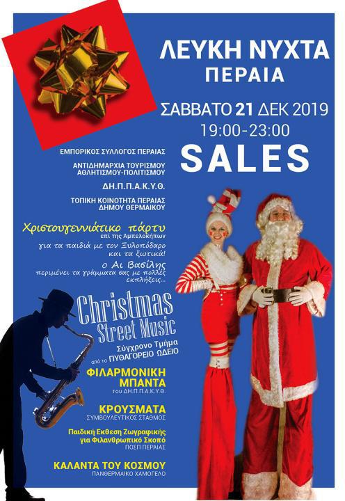 Λευκή Νύχτα έρχεται και στον Δήμο Θερμαϊκού και συγκεκριμένα στην τοπική κοινότητα της Περαίας, το Σάββατο 21 Δεκεμβρίου από τις 19:00 έως τις 23:00. Εκπλήξεις, προσφορές μόνο για εκείνη την νύχτα σε πολλά καταστήματα της Περαίας, γλυκίσματα, ζεστό κρασί, Χριστουγεννιάτικες μελωδίες που θα συνθέσουν ένα γιορτινό πάρτι με τον Άγιο Βασίλη να μοιράζει δώρα στους μικρούς επισκέπτες.