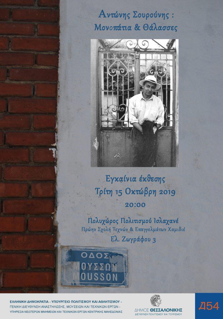 Ένα αφιέρωμα στον συγγραφέα Α.Σουρούνη στο Ισλαχανέ, σε συνεργασία με την Υπηρεσία Νεωτέρων Μνημείων και Τεχνικών Έργων Κεντρικής Μακεδονίας (14-15 Οκτωβρίου 2019).