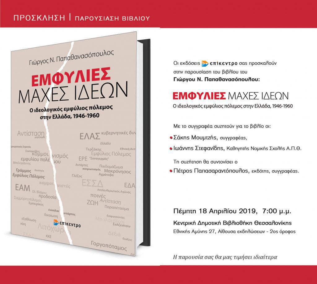 Την Πέμπτη η παρουσίαση του βιβλίου «Εμφύλιες μάχες ιδεών. Ο ιδεολογικός εμφύλιος πόλεμος στην Ελλάδα 1946 – 1960» στην Κεντρική Δημοτική Βιβλιοθήκη
