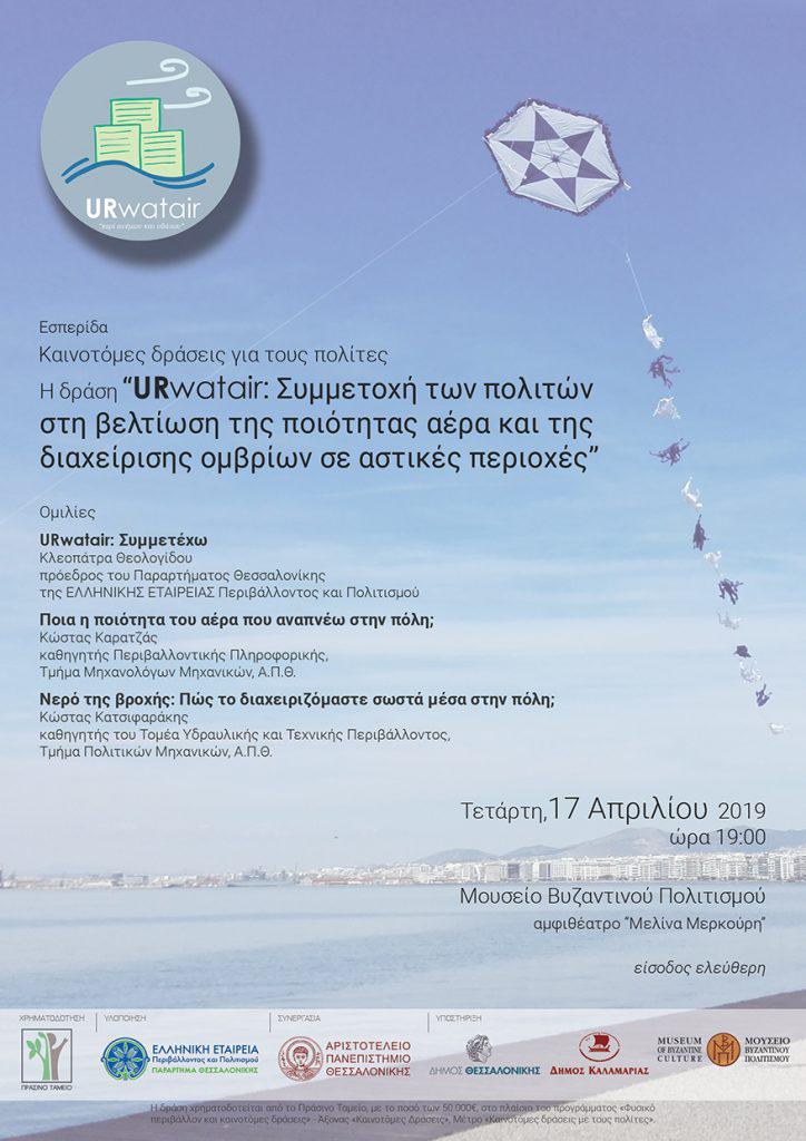 Την Τετάρτη η εσπερίδα με θέμα “Καινοτόμες δράσεις για τους πολίτες. Η δράση «URwatair: Συμμετοχή των πολιτών στη βελτίωση της ποιότητας αέρα και της διαχείρισης ομβρίων σε αστικές περιοχές”
