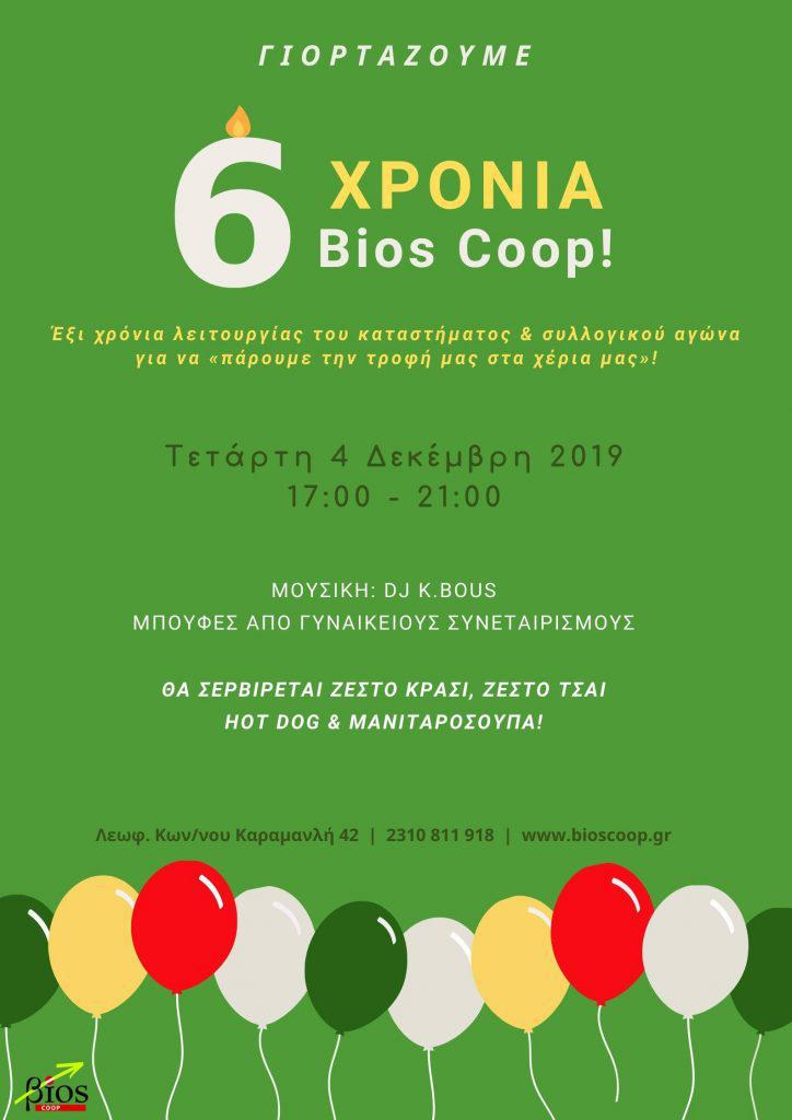 Την Τετάρτη 6 χρόνια Βίος Coop: γιορτή γενεθλίων, την Τετάρτη 4 Δεκεμβρίου 2019