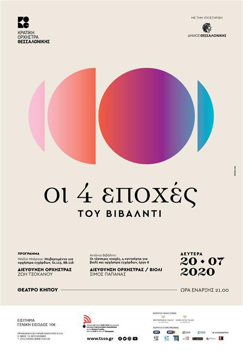 Η Κρατική Ορχήστρα Θεσσαλονίκης παρουσιάζει στο Θέατρο Κήπου το πρόγραμμα με το οποίο θα εμφανιστεί λίγες ημέρες μετά στο Ηρώδειο, στο πλαίσιο του Φεστιβάλ Αθηνών & Επιδαύρου 2020. Η συναυλία ξεκινά με το πλούσιο σε αντιθέσεις ‘Ντιβερτιμέντο για ορχήστρα εγχόρδων’ του Μπέλα Μπάρτοκ και ολοκληρώνεται με το διαχρονικό αριστούργημα του Αντόνιο Βιβάλντι ‘Οι 4 εποχές’.