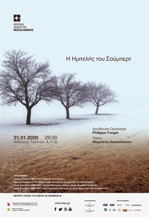 H θρυλική ‘Ημιτελής Συμφωνία’ του Σούμπερτ είναι ένα διαχρονικό αριστούργημα που έχει δημιουργήσει πλήθος θεωριών γύρω του και έχει διχάσει τους ιστορικούς μέχρι και για το αν ολοκληρώθηκε τελικά ή όχι. Το πρόγραμμα ξεκινά με ένα επίσης ημιτελές έργο του ‘Έλληνα Σούμπερτ’, όπως είχε βαπτίσει ο Καλομοίρης, από θαυμασμό, το σπουδαίο Θεσσαλονικιό συνθέτη Αιμίλιο Ριάδη. Στο δεύτερο μέρος ο αγαπημένος Γάλλος μαέστρος Philippe Forget διευθύνει την ΚΟΘ και σε δύο έργα του συμπατριώτη του Σαιν Σανς με έντονο ανατολίτικο χρώμα.