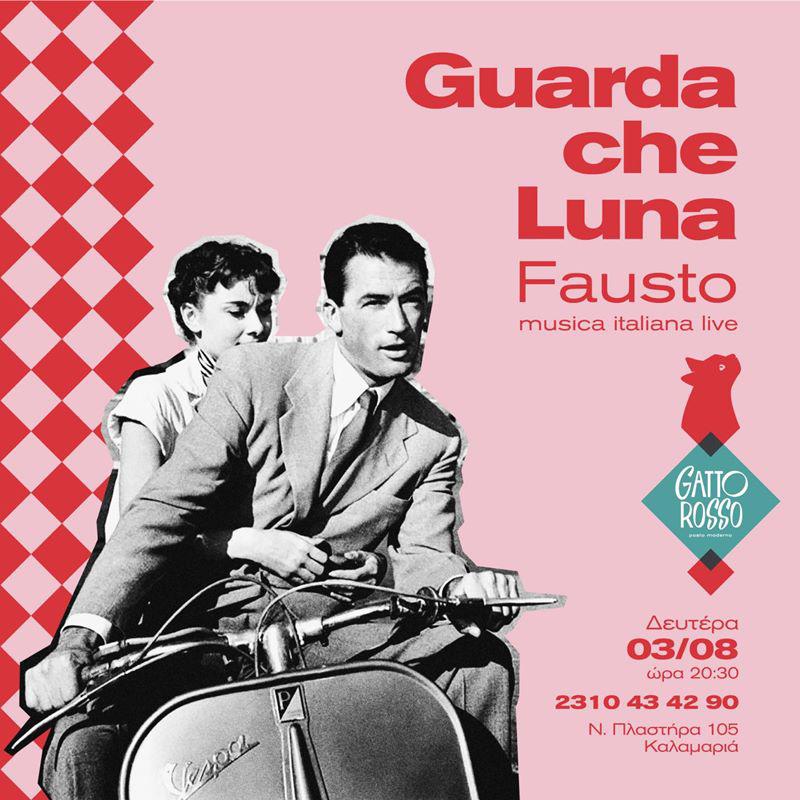 Ζήσε μία μαγευτική βραδιά κάτω από το φως της Πανσελήνου την ερχόμενη Δευτέρα στο Gatto Rosso. Πιάτα της αυθεντικής ιταλικής κουζίνας συνοδεία live μουσικής. Στο μικρόφωνο ο Fausto Bossini που θα ερμηνεύσει αγαπημένα κομμάτια.