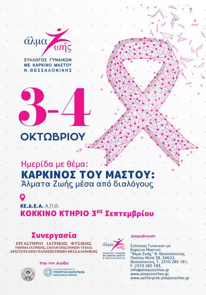 Προσεγγίζοντας την ανθρώπινη πλευρά της νόσου, γυναίκες και άνδρες που έχουν βιώσει τον Καρκίνο του Μαστού, θα μοιραστούν την εμπειρία τους μέσα από βιωματικούς διαλόγους που θα έχουν με διακεκριμένους ιατρούς. Θέματα όπως η διαχείριση κ η ανακοίνωση των δυσάρεστων νέων, η μετάσταση, η σεξουαλικότητα, η πλαστική αποκατάσταση, η διαχείριση των ρόλων από τη μαμά που αρρωσταίνει, είναι μόνο μερικά από αυτά που θα περιέχουν οι διάλογοι τους. Παράλληλα και τις δυο μέρες θα πραγματοποιούνται workshops yoga και ψυχολογίας, εκθέσεις ζωγραφικής και φωτογραφίας με θέμα τον Καρκίνο του Μαστού και οπτικοακουστικές εγκαταστάσεις με θέμα τον κύκλο της ζωής.