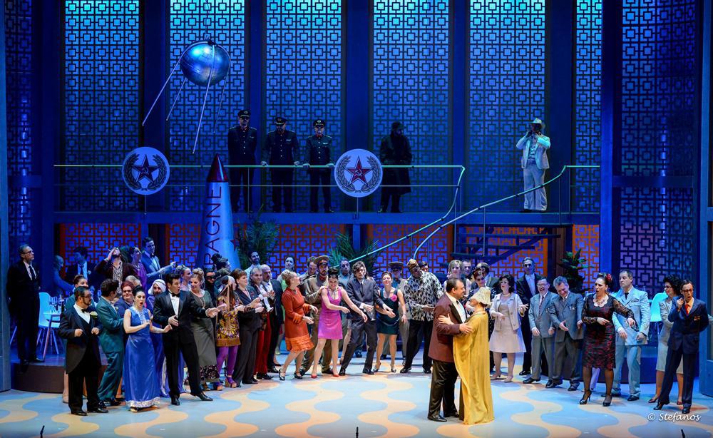 Η «Νυχτερίδα» του Γιόχαν Στράους του νεότερου, με την υπέροχη μουσική και τη γεμάτη χιούμορ και ανατροπές πλοκή της, είναι η πιο δημοφιλής από τις λαμπερές βιεννέζικες οπερέτες. Τώρα παρουσιάζεται στα ελληνικά, σε μια μοντέρνα εκδοχή, όπου τα μέγαρα της Αυστροουγγαρίας έχουν αντικατασταθεί από τα αθηναϊκά σαλόνια του ’60, οι Βιεννέζοι ευγενείς από τους συνταγματάρχες του απριλιανού πραξικοπήματος και οι Ρώσοι πρίγκιπες από Σοβιετικούς πρέσβεις. Μια πολυσυζητημένη και άκρως επιτυχημένη παραγωγή σε σκηνοθεσία του Αλέξανδρου Ευκλείδη, με τη συμμετοχή της Κρατικής Ορχήστρας Θεσσαλονίκης και της Μικτής Χορωδίας Θεσσαλονίκης