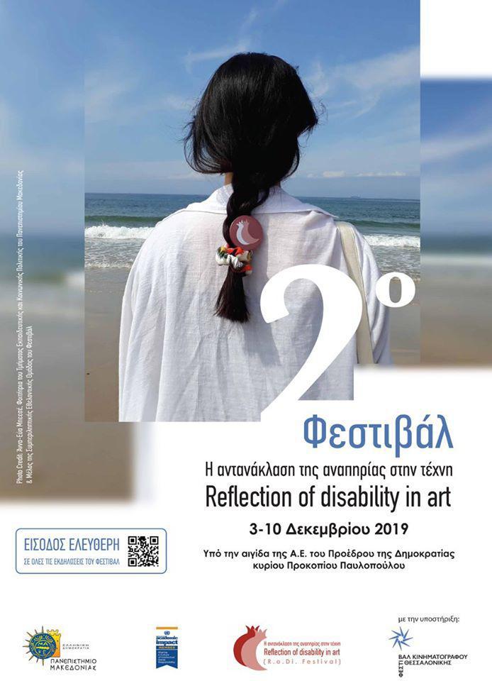 Το Πανεπιστήμιο Μακεδονίας διοργανώνει από τις 3 έως τις 10 Δεκεμβρίου 2019 το 2ο Φεστιβάλ «Η αντανάκλαση της αναπηρίας στην τέχνη – Reflection of Disability in Art» με ακρωνύμιο RoDi. Το Φεστιβάλ πραγματοποιείται υπό την Αιγίδα της Α.Ε. του Προέδρου της Δημοκρατίας κυρίου Προκοπίου Παυλοπούλου και με την υποστήριξη του Φεστιβάλ Κινηματογράφου Θεσσαλονίκης. Σκοπός του φεστιβάλ είναι η ανάδειξη της τέχνης μέσα από την οπτική των ατόμων με αναπηρία και η ιδέα βασίζεται στην αναγνώριση του αναφαίρετου ανθρώπινου δικαιώματος της έκφρασης μέσω της Τέχνης.