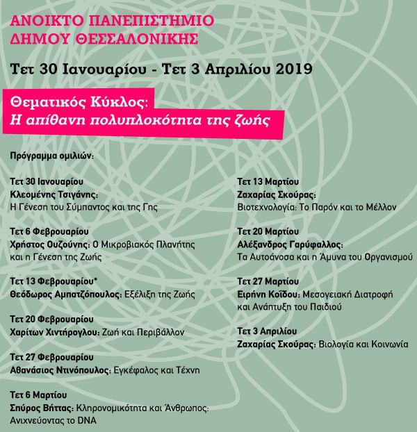 *Την Τρίτη 19/3 στις 20.00 στην Αίθουσα Τελετών ΑΠΘ, Οι ενδιαφερόμενοι μπορούν να προμηθεύονται τις προσκλήσεις δωρεάν εισόδου από το Τμήμα Δημοσίων Σχέσεων του ΑΠΘ, από την Παρασκευή 15 Μαρτίου έως και την Τρίτη 19 Μαρτίου 2019 και ώρες 9:00-14:00