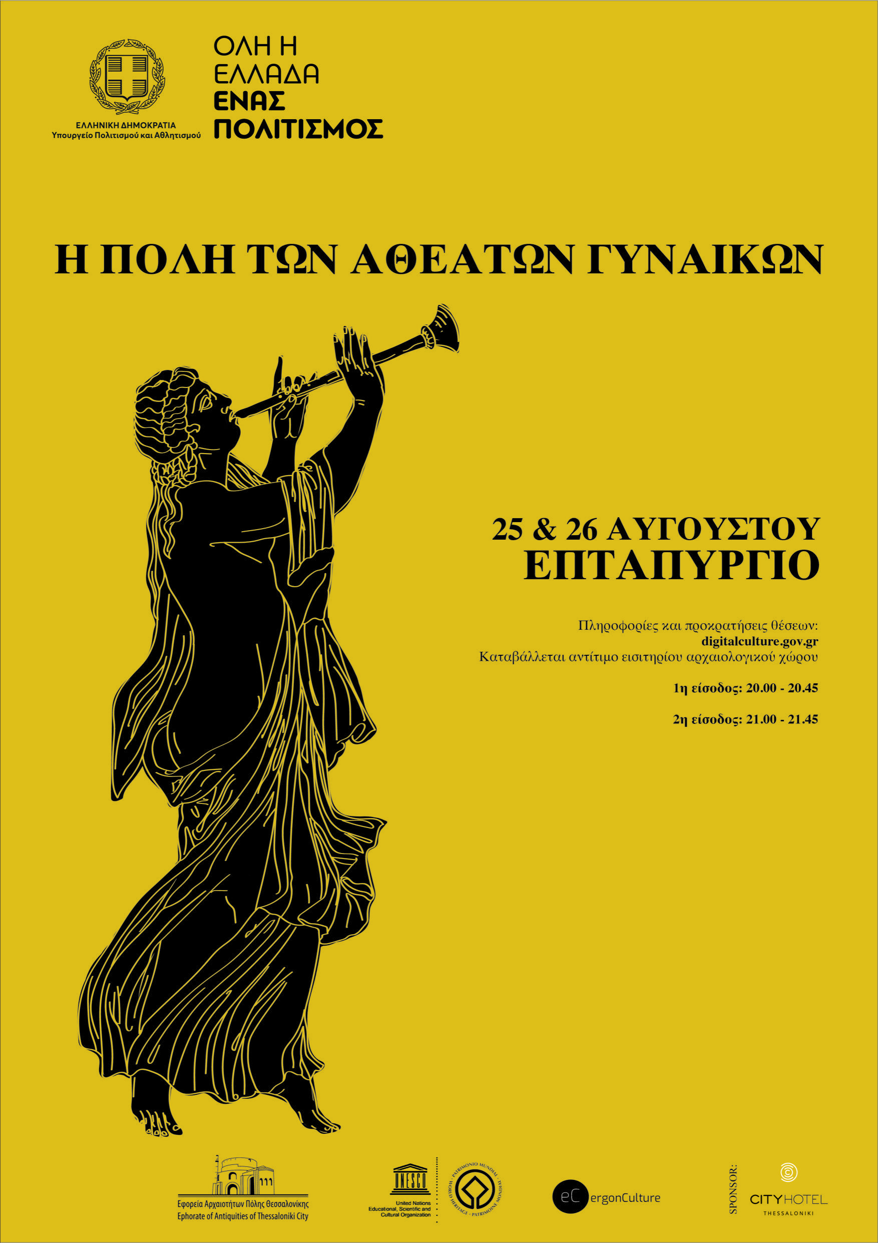 *25 & 26 Αυγούστου στις 20.00 – 20.45 & 21.00 – 21.45. Επταπύργιο Θεσσαλονίκης. Εισιτήριο 6 Ευρώ. Υποχρεωτική η προκράτηση θέσης. Αναλυτικό πρόγραμμα, πληροφορίες και προκρατήσεις θέσεων στο digitalculture.gov.gr