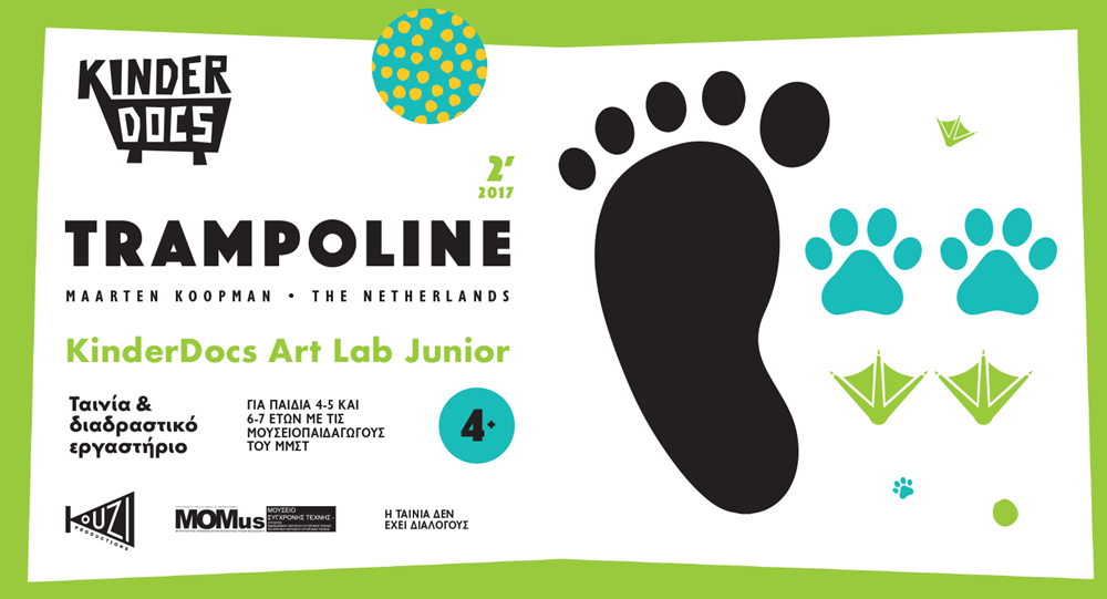 Ένα μουσειοπαιδαγωγικό πρόγραμμα για παιδιά 4-5 & 6-7 ετών, βασισμένο στην ομότιτλη ταινία Trampoline! Αναγνωρίζοντας στην ταινία ίχνη (ανθρώπων& ζώων) που σκίζουν και διαπερνούν την επιφάνεια ενός ελαστικού «καμβά»-τραμπολίνου καθώς οι πρωταγωνιστές χοροπηδούν πάνω σε αυτό ρυθμικά, οι μαθητές αυθόρμητα μέσα από ερωταποκρίσεις προσεγγίζουν έννοιες όπως η επιφάνεια, ο όγκος, η βαρύτητα.