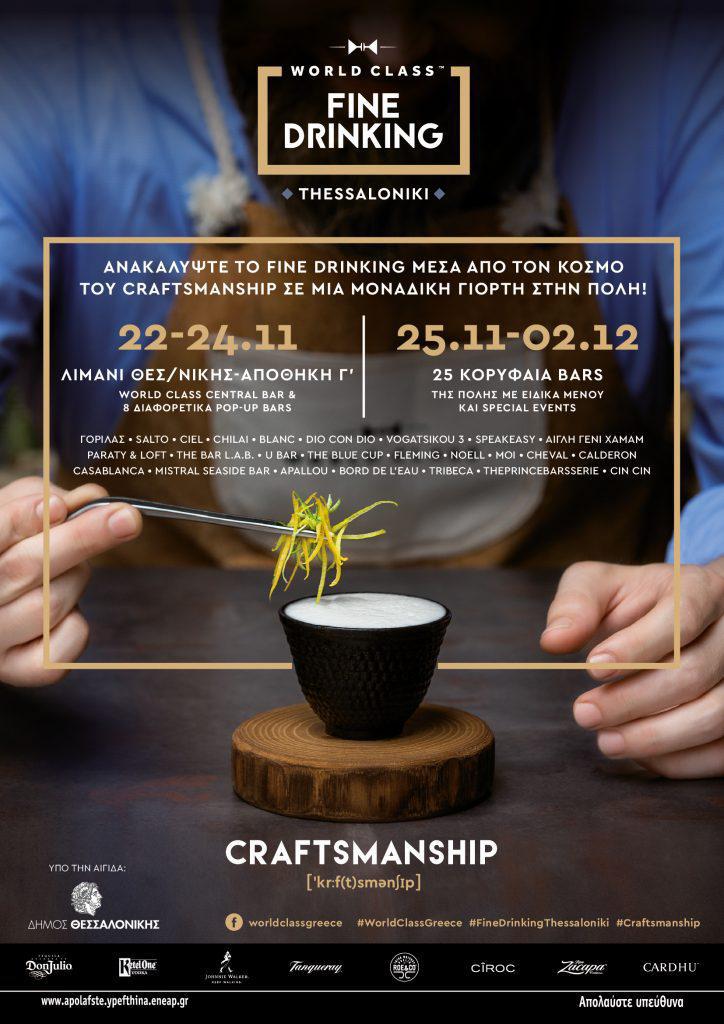 Η γιορτή αυτή δεν σταματάει στο pop-up αλλά ξεδιπλώνεται στα αγαπημένα bar της Θεσσαλονίκης από 25 Νοεμβρίου έως και 2 Δεκεμβρίου. Η World Class Fine Drinking εμπειρία θα συνεχιστεί στα συνεργαζόμενα bar που θα προσφέρουν ειδικά Fine Drinking μενού και special happenings εμπνευσμένα από το φετινό θέμα, το craftsmanship!
