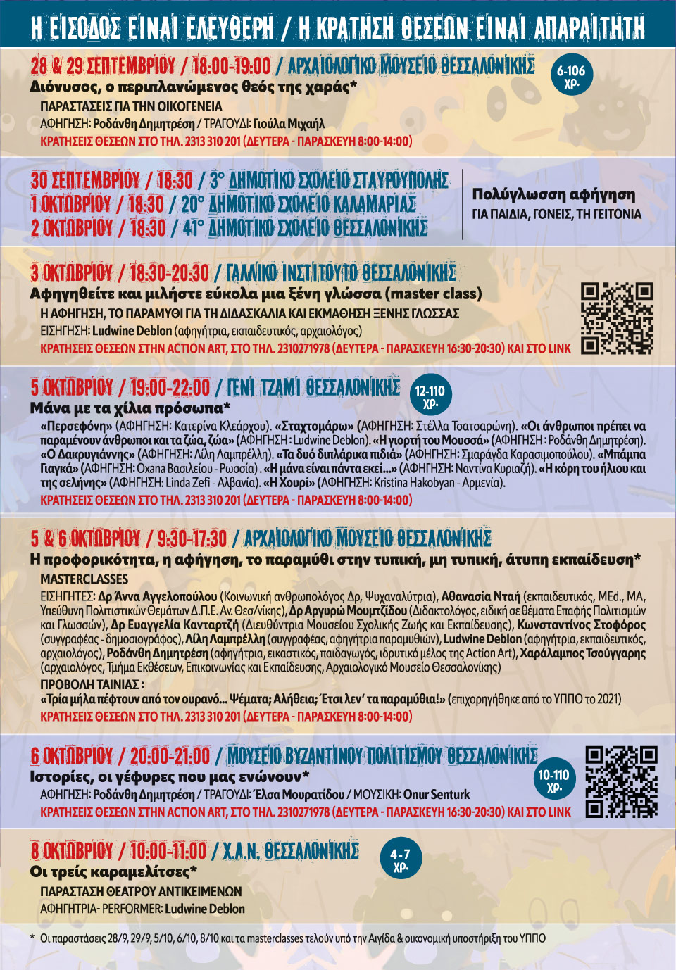 *Οι παραστάσεις 28, 29/9, 5/10 ,6/10, 8/10 και τα masterclasses τελούν υπό την Αιγίδα & οικονομική