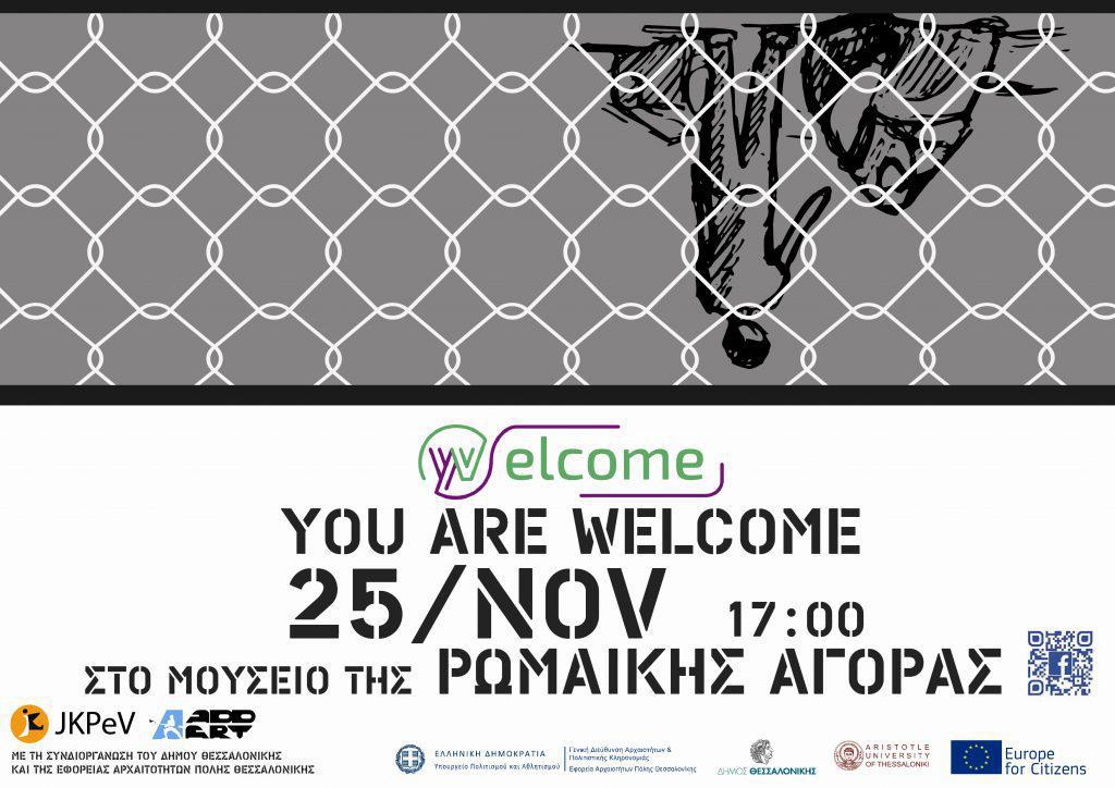 Το Σάββατο 25 Νοεμβρίου 2017 στο Μουσείο της Ρωμαϊκής Αγοράς, στις 17:00, θα πραγματοποιηθεί εκδήλωση στο πλαίσιο του ευρωπαϊκού έργου “YOU ARE WELCOME“ με τη συνδιοργάνωση της Εφορείας Αρχαιοτήτων Πόλης Θεσσαλονίκης.