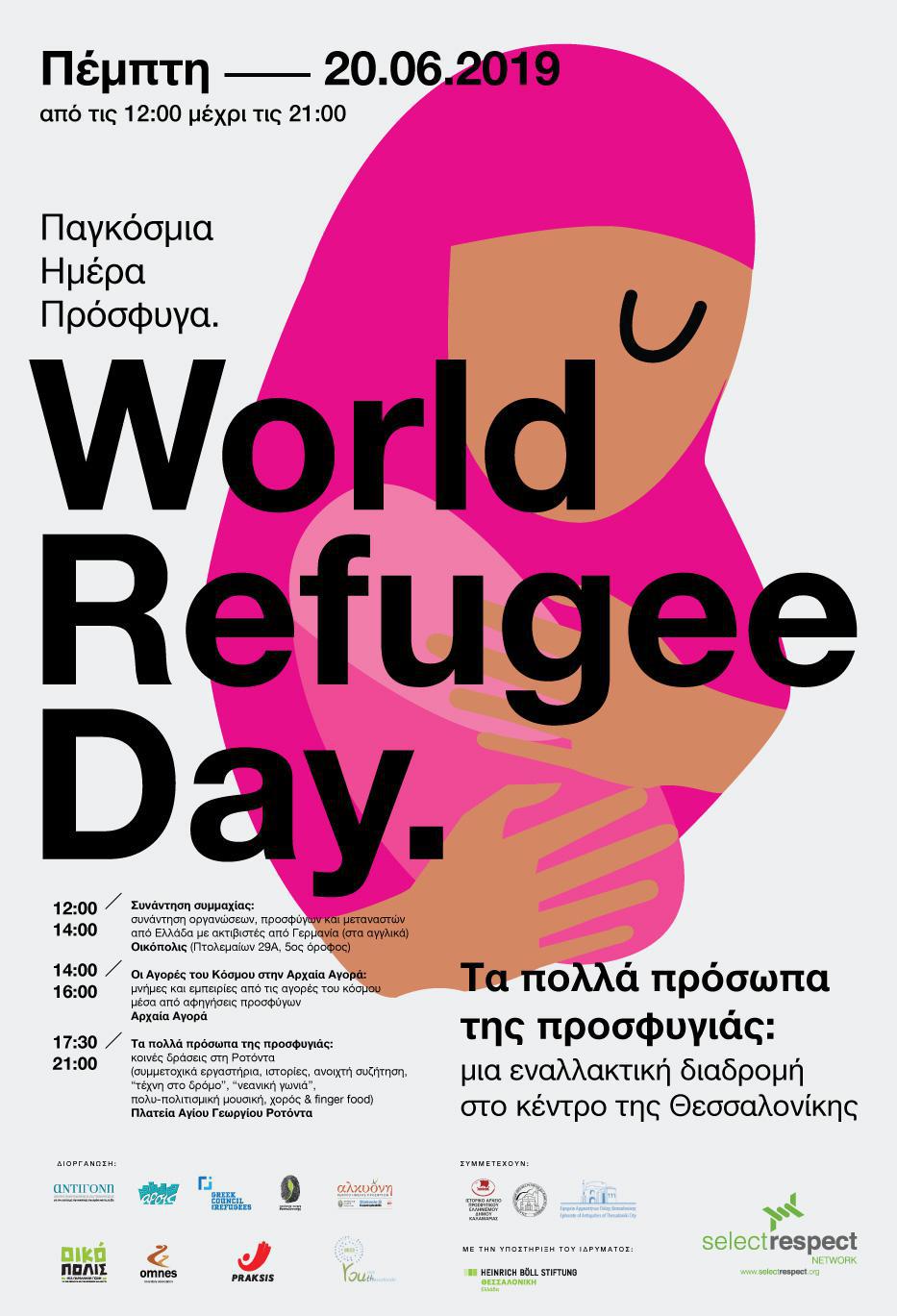 Με αφορμή την Παγκόσμια Ημέρα Πρόσφυγα, την Πέμπτη 20 Ιουνίου, οργανώσεις του Δικτύου Select Respect σε συνεργασία με την Εφορεία Αρχαιοτήτων Θεσσαλονίκης, το Ιστορικό Αρχείο Προσφυγικού Ελληνισμού Δήμου Καλαμαριάς και τον Σύλλογο Κατοίκων Περιοχής Ροτόντας και Φίλων του Μνημείου, διοργανώνουν εκδήλωση ευαισθητοποίησης, με βασικό γνώμονα την προώθηση της συνύπαρξης και των ευκαιριών για αλληλεπίδραση της τοπικής και προσφυγικής κοινότητας.