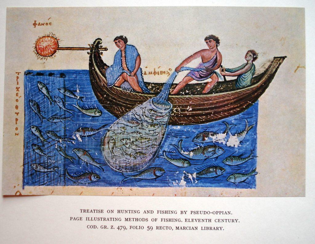 Πυρσός που χρησιμοποιήθηκε ως πυροφάνι για νυχτερινό ψάρεμα. Απεικονίζεται σε μικρογραφία του Κώδ. gr. Z. 479, f. 59r της Μαρκιανής Βιβλιοθήκης, του 11ου αι., και περιγράφεται με τον όρο φανός.