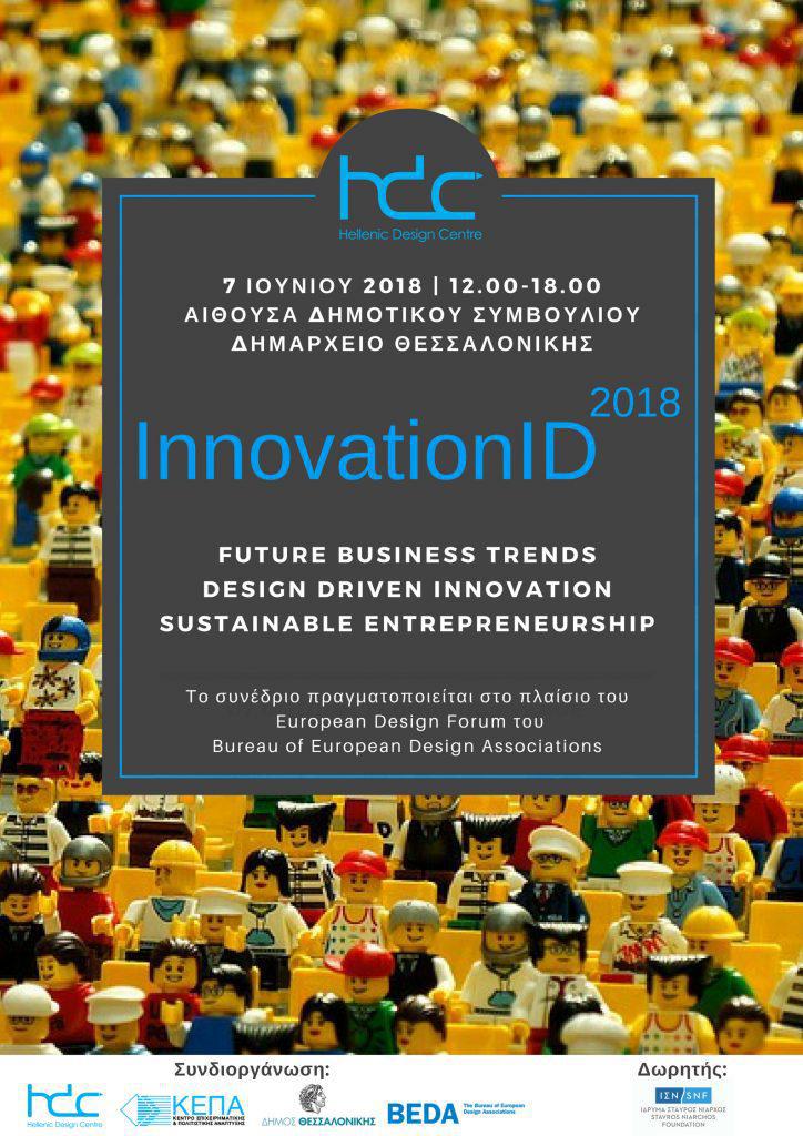 Το Hellenic Design Centre σας προσκαλεί στο Διεθνές Συνέδριο “ΙnnovationID2018” στις 7 Ιουνίου 2018 (12.00-18.00) στην αίθουσα Δημοτικού Συμβουλίου του Δήμου Θεσσαλονίκης, για να βρείτε απαντήσεις στα παραπάνω και σε ακόμα περισσότερα ερωτήματα σχετικά με την επιχειρηματικότητα και το Design.